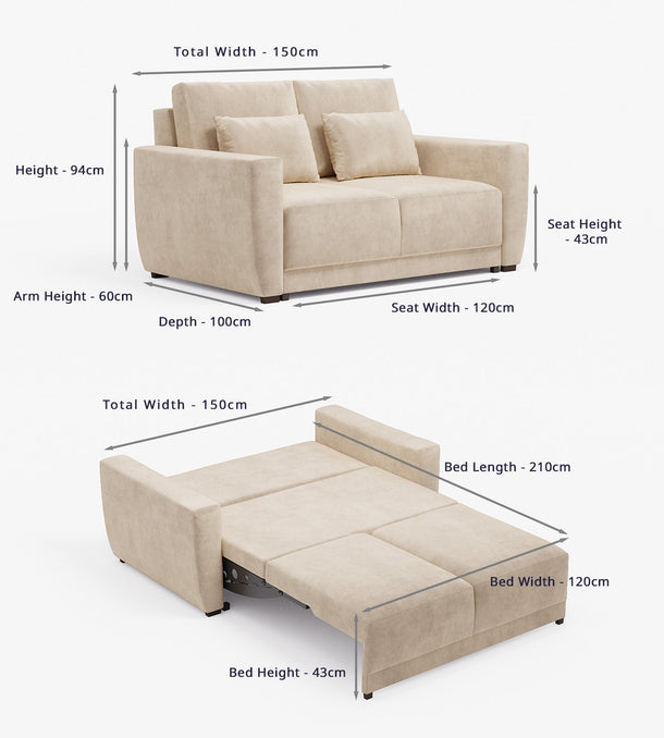 Wir präsentieren das Oscar-Schlafsofa für 2 Personen – eine einzigartige Kombination aus Komfort und Stil mit markanten geschwungenen Armlehnen. Werten Sie Ihr Zuhause mit dem Oscar-Schlafsofa auf, das Komfort auf zeitgenössische Eleganz vereint.